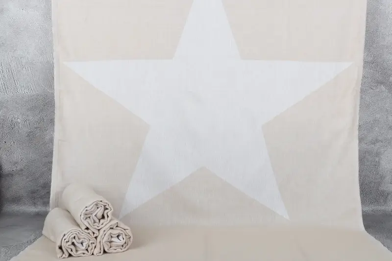 Star Design Towel Organic Cotton Beige, Beach Towel, 40x71 Inches