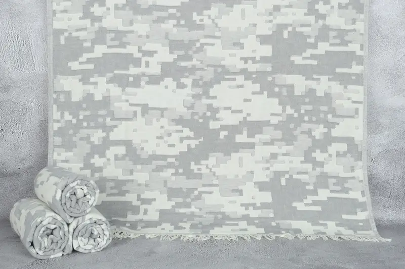 Turkish Beach Towel Personalized Gray Camouflage, Beige, 36x67 Inches