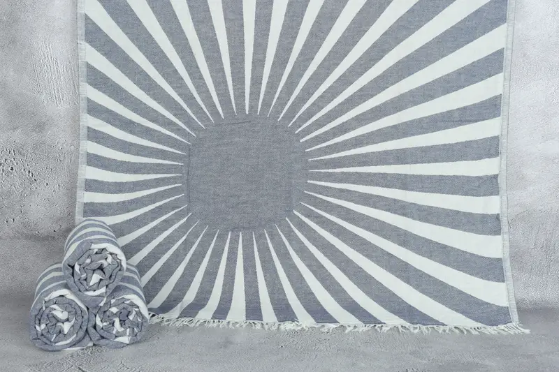 Personalized Turkish Beach Towel Navy Sun Pattern, 36x71 Inches