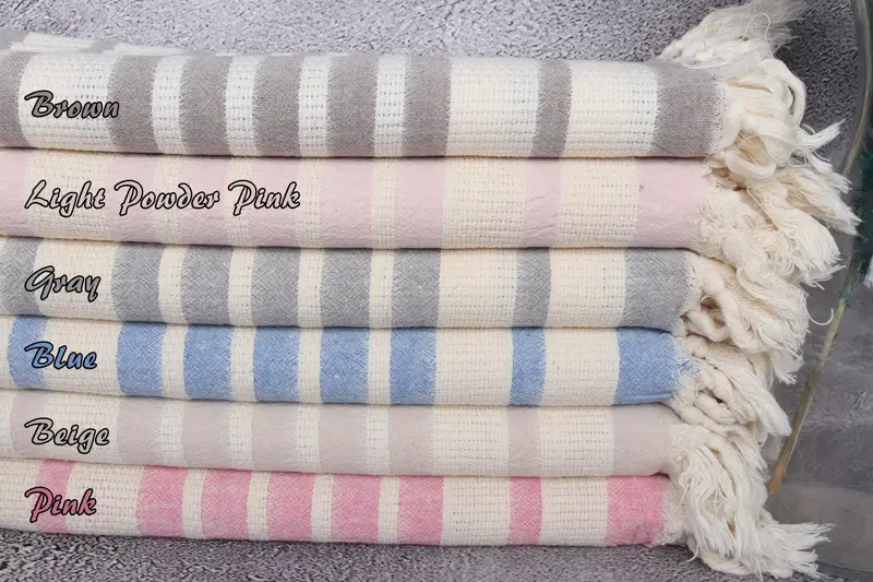 Turkish Towel USA Organic Cotton Beach Towel Beige Stripes, 34x71 Inches