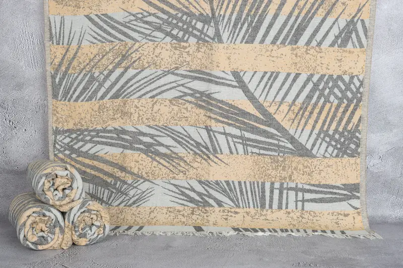 Embroidered Beach Towel Mustard Floral Patterned 38x77 Inches