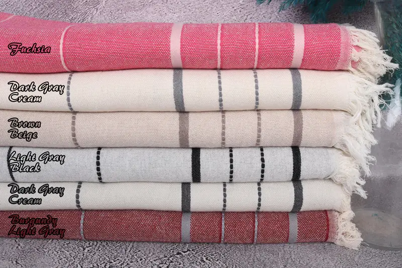Striped Turkish Towel Organic Cotton, Beach Towel Beige, 40x71 Inches