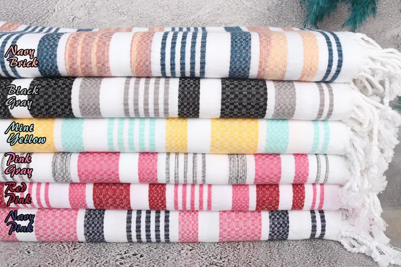 Striped Organic Cotton Beach Towel Beige, 36x71 Inches