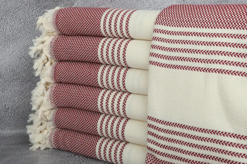 40x71 Inches Burgundy Cotton Towel, Striped, Organic, Beach Towel