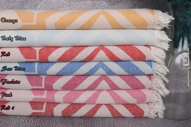 Organic Cotton Tulip Patterned Beach Towel, Beige, 36x67 Inches