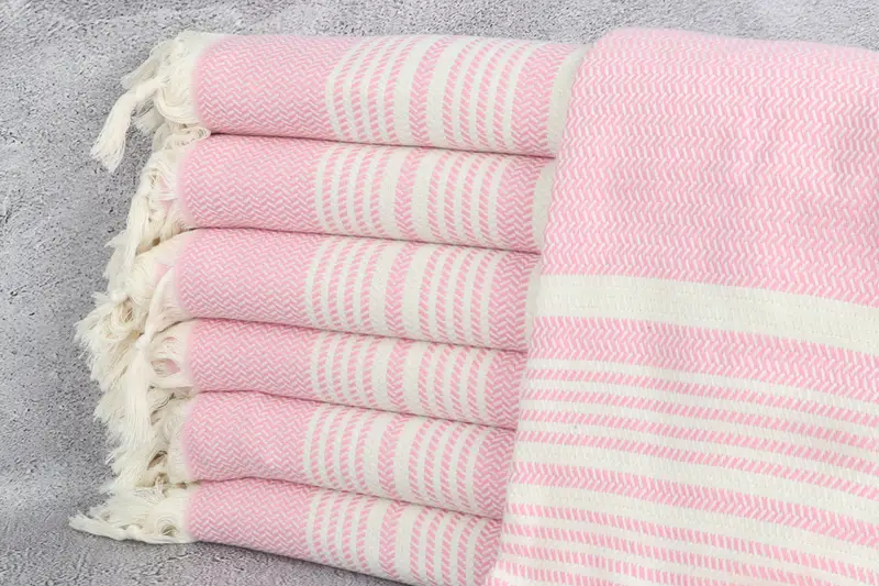 Beach Towel Striped Pink and Beige Organic Cotton, 40x71 Inches