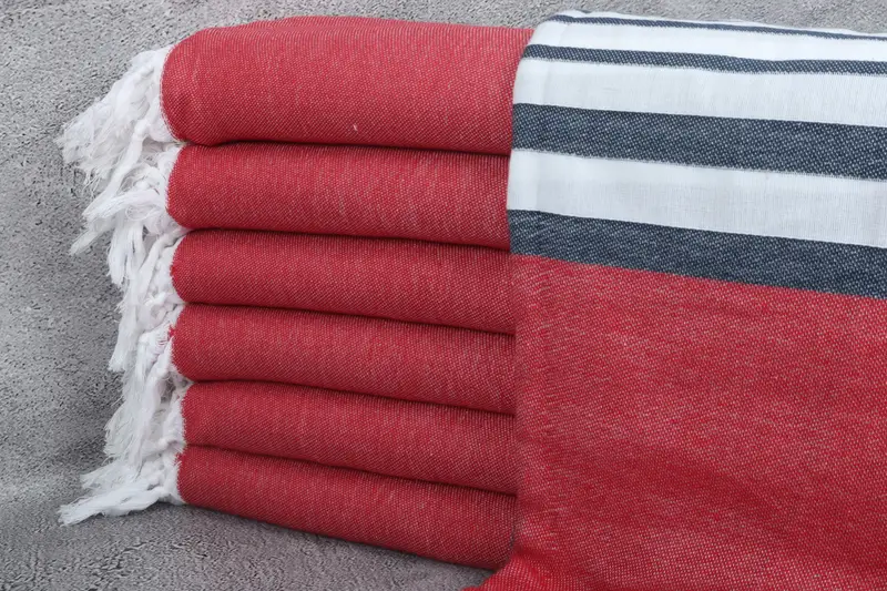 Personalized Turkish Beach Towel Red Cotton, Striped, 40x71 Inches