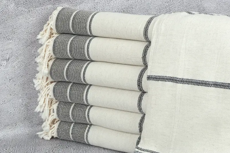 Beach Towel Striped Turkish Linen Khaki Green, 36x71 Inches
