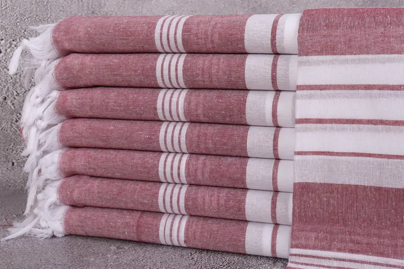 Organic Turkish Towels are characterized by their premium fiber composition and high absorbency. Ensuring optimal hydration retention, these towels are woven from ECO-FRIENDLY premium Turkish cotton, providing a soft and durable texture. Resulting in a lightweight yet robust fabric, the towels exhibit minimal tolerance in hand-weaving, maintaining a size of 40x71 inches or 100x180 centimeters with minor variances up to 5 centimeters.