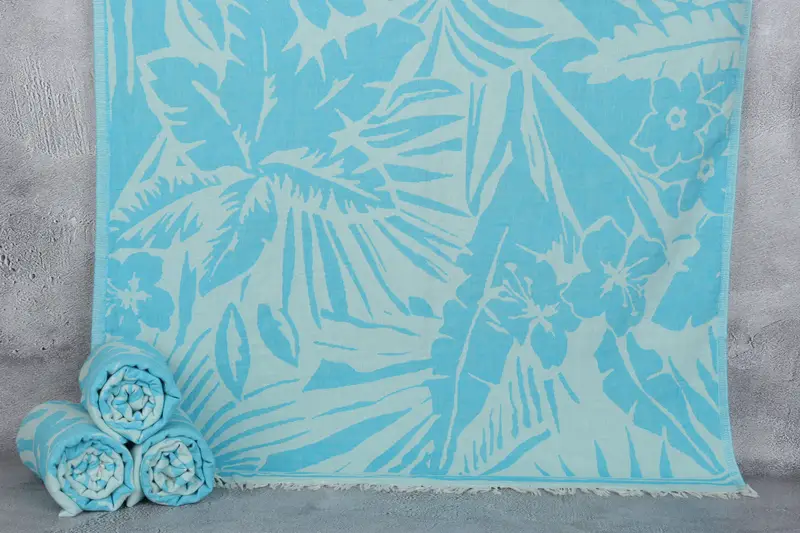 The monogrammed beach towel is characterized by its organic Turkish cotton composition, renowned for its high absorbency. Measuring 40x71 inches or 100x180 centimeters, it weighs approximately 320 grams, ensuring a robust yet soft texture. Hand-weaving tolerances may vary by up to 5cm.