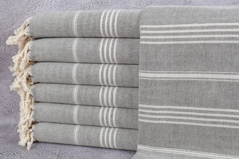 The Turkish towels, characterized by their eco-friendly premium Turkish cotton, offer superior absorbency and versatility. The towels, with dimensions of 40x71 inches or 100x180 centimeters, weigh 360 grams and are hand-woven, ensuring a tolerance of up to 5 cm. Each piece is meticulously crafted, resulting in a product ready for various applications.