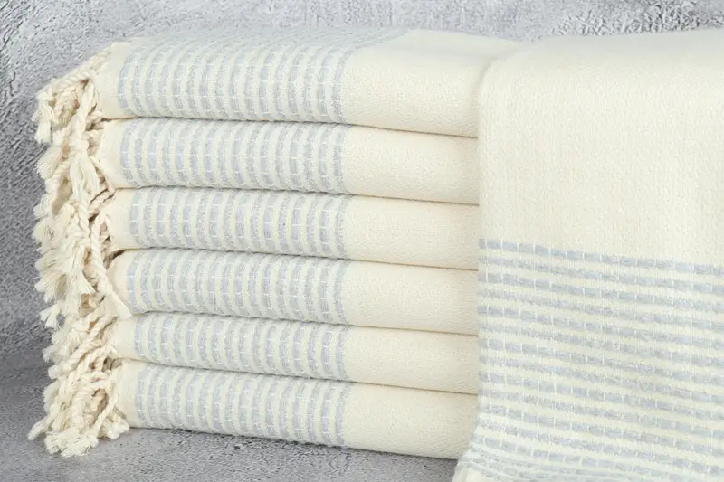Constructed from organic Turkish cotton, the towels are characterized by their exceptional absorbency, ensuring durability and comfort. Measuring 36x69 inches or 90x175 centimeters, each towel weighs 460 grams, with weaving tolerances of up to 2 inches or 5 centimeters. Hand-woven with precision, these towels maintain their shape despite minor variances.