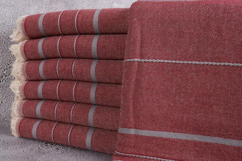 Ensuring the provision of high-quality Turkish towels, the material utilized is eco-friendly premium Turkish cotton. Resulting in soft and absorbent towels, the fiber composition is meticulously selected. The dimensions of the Turkish towels are 40x71 inches or 100x180 centimeters, ensuring a standardized size with a hand-weaving tolerance of up to 2 inches or 5 centimeters.