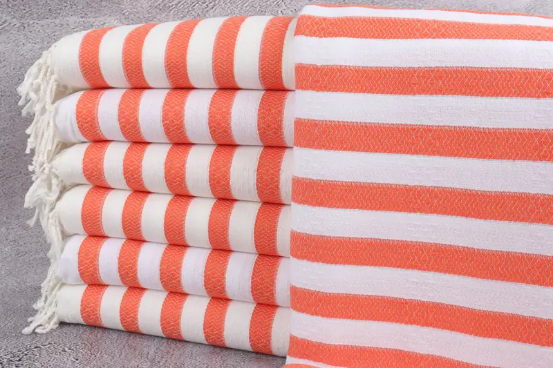 Organic Turkish towels are crafted from ECO FRIENDLY Premium Turkish Cotton, ensuring high absorbency and durability. Characterized by a size of 36x71 inches (90x180 cm) and weighing 340 grams, these hand-woven towels allow for weaving tolerances of up to 2" or 5 cm. Each piece is pre-shrunk, enhancing its multi-purpose utility.
