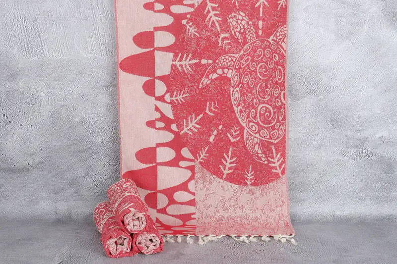 The Turkish towels are characterized by their organic Turkish cotton composition, ensuring superior absorbency and soft texture. Resulting in a versatile product, these towels have dimensions of 18x36 inches or 45x90 centimeters with a weight of 120 grams per towel. Tolerances in weaving may vary by up to 2 inches or 5 centimeters.