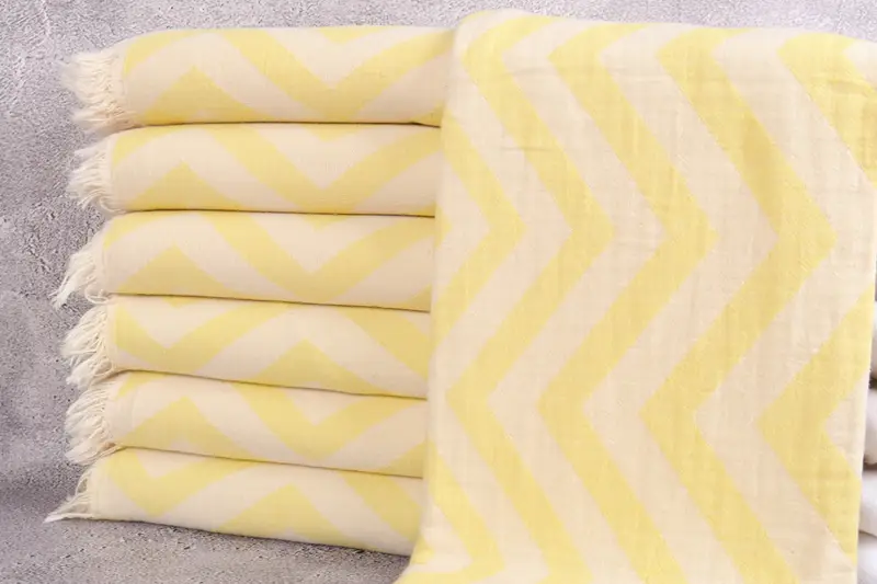 Organic Turkish cotton characterizes the fiber composition of these towels, resulting in exceptional absorbency and durability. Ensuring a premium quality, the towels exhibit a 34x71 inches dimension, translating to 85x180 centimeters. Hand-weaving tolerances of 2 inches or 5 centimeters are expected.