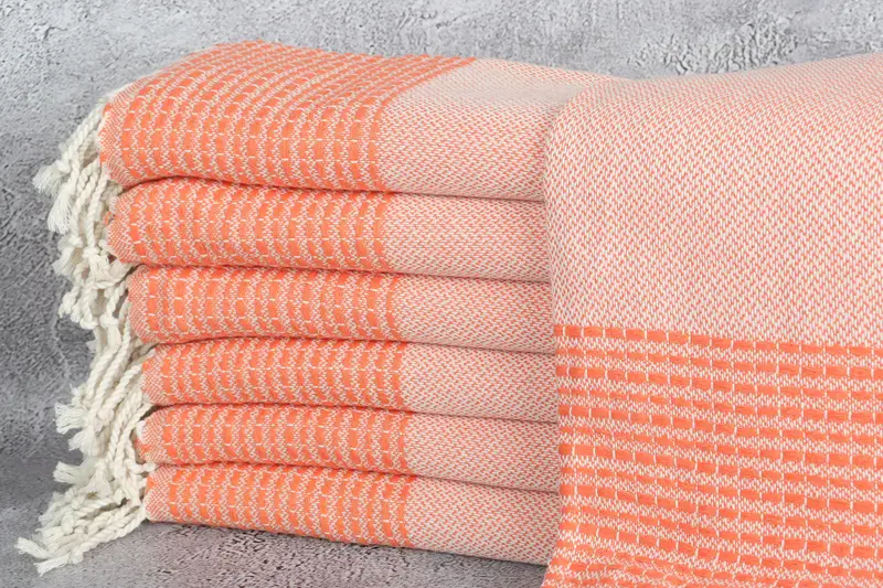 The product showcases organic Turkish cotton, characterized by its high absorbency and durability. Measuring 36x69 inches or 90x175 centimeters, the towel, hand towel, or blanket has a weight of 420 grams, ensuring it provides comfort while maintaining a manageable size. Weaving tolerances of 2 inches or 5 centimeters are standard, ensuring precision and quality in every piece.