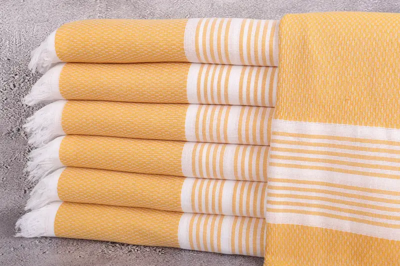 Handcrafted organic Turkish cotton towels, renowned for their exceptional absorbency, are designed and produced in a workshop. Ensuring durability, these towels maintain softness with each wash, resulting in enhanced textile performance. Dimensions for the towels are 40x71 inches or 100x180 centimeters with a tolerance of 2 inches or 5 centimeters due to traditional hand-weaving techniques. Each towel weighs 260 grams, providing a balance of lightweight portability and robust utility.