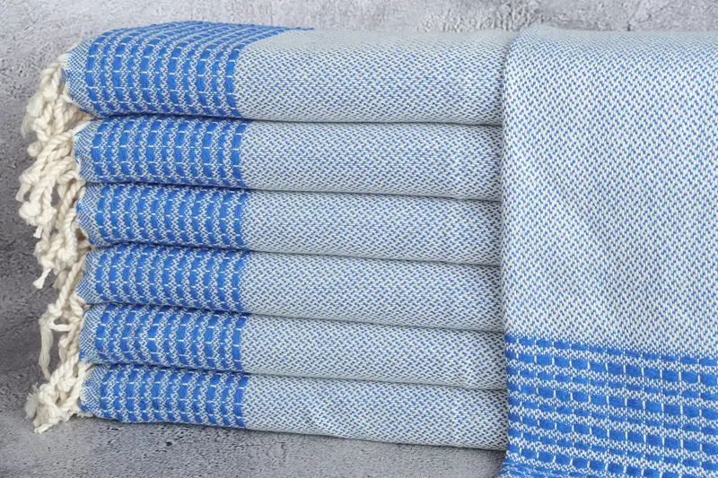 Turkish towels and blankets are composed of ECO FRIENDLY Premium Turkish Cotton, ensuring high absorbency and durability. The dimensions for these towels and blankets are 20x40 inches or 50x100 centimeters, with a weight of 120 grams. Each product is handwoven with a tolerance of up to 2 inches or 5 centimeters.