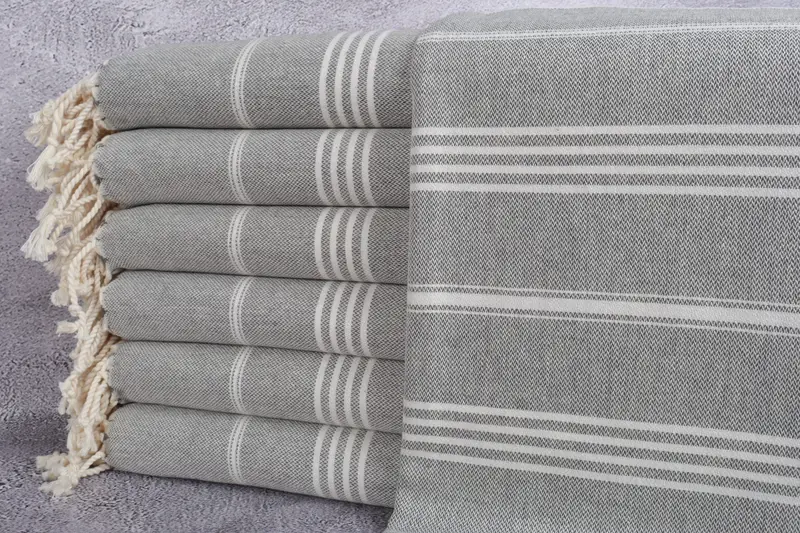 The Turkish towels are distinguished by their eco-friendly premium Turkish cotton, ensuring high absorbency and durability. Measuring 40x67 inches or 100x170 centimeters, each piece is meticulously hand-woven, with a weight of 330 grams. Due to hand-weaving techniques, there may be a 2" or 5cm tolerance.