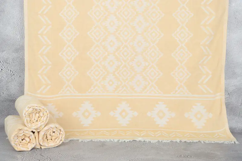 Organic Turkish cotton characterizes the fiber composition, ensuring high absorbency. The towels, towels, hand towels, or blankets, measuring 40x73 inches or 100x185 centimeters, with a weight of 340 grams, exhibit precision in hand-weaving with tolerances of up to 2" or 5cm. Embroidery customization is available, with personalization options such as monograms for wedding gifts. Pre-washed towels are provided, resulting in increased softness with use. Orders for US addresses are fulfilled from a US warehouse, while non-US orders ship from Turke...