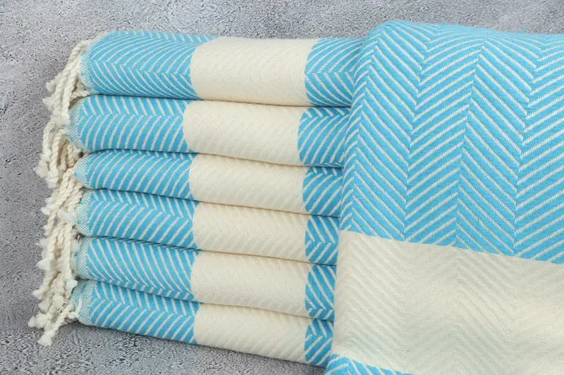 Organic Turkish cotton characterizes the towel's composition, ensuring high absorbency and softness. The Turkish Towel, Turkish Blanket, Turkish Hand Towel, or Turkish Throw, is woven using traditional techniques, resulting in a product with a size of 40x71 inches or 100x180 centimeters, with a tolerance of up to 5 centimeters. Weighing 424 grams, these towels are carefully crafted, allowing for minor variations in dimensions.