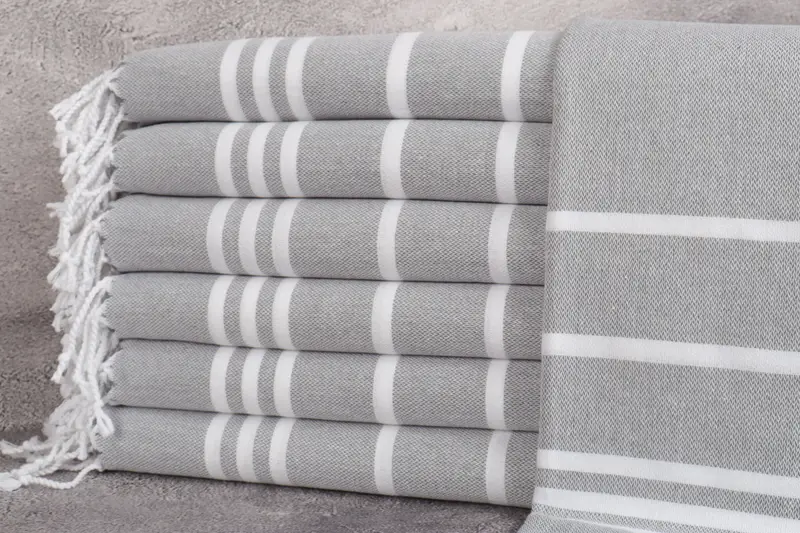 Handmade Turkish towels, characterized by their multi-purpose utility and distinctive weave, utilize organic Turkish cotton that enhances absorbency and softness. The towels are meticulously hand-woven, resulting in precise dimensions of 40x71 inches (100x180 cm), with a tolerance of up to 5 cm, and weighing approximately 440 grams. Each towel is hand-crafted to ensure consistency in quality and design.