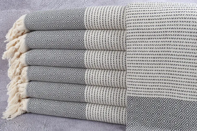 The organic beach towel, wholesale towels, diamond peshtema, and 36x71 inches embroidered towel are characterized by their light and flat-woven structure, crafted from eco-friendly premium Turkish cotton. Ensuring superior absorbency and softness, these towels and blankets are meticulously woven, resulting in a dimensional variance of up to 5 cm. Each product weighs 300 grams, maintaining consistency within a 2" or 5 cm tolerance.