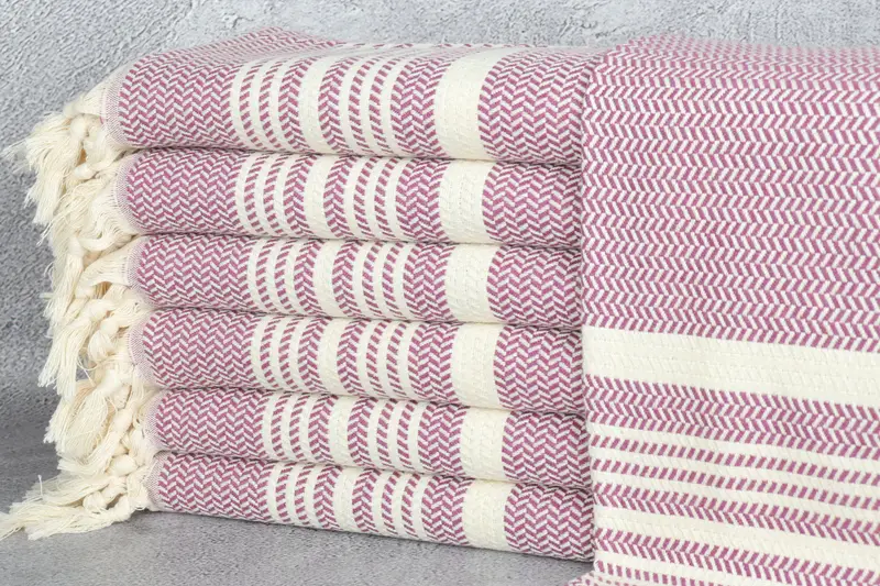 Turkish towels are characterized by their flat-woven construction, ensuring they take up minimal space while providing maximum utility. Crafted from eco-friendly premium Turkish cotton, they exhibit high absorbency and softness, especially when washed prior to initial use. The towels measure 18x40 inches (45x100 centimeters) with a weight of 112 grams; due to hand-weaving techniques, dimensions may vary by up to 2 inches (5 centimeters).