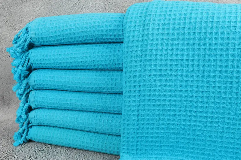 Turquoise Waffle Towel Personalized Organic Cotton, 36x67 Inches