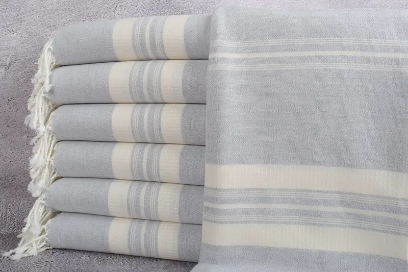 Personalized Turkish Towel Organic Light Gray Stripes, 38x60 Inches