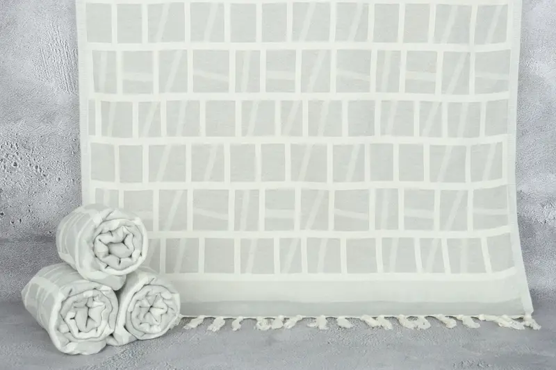 Personalized Beach Towel Custom Turkish Cotton Light Gray Patterned, 34x69 Inches