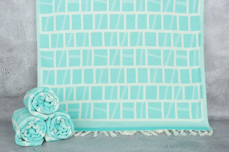 Turkish Bath Towel Custom Benetton Green Patterned, 34x69 Inches