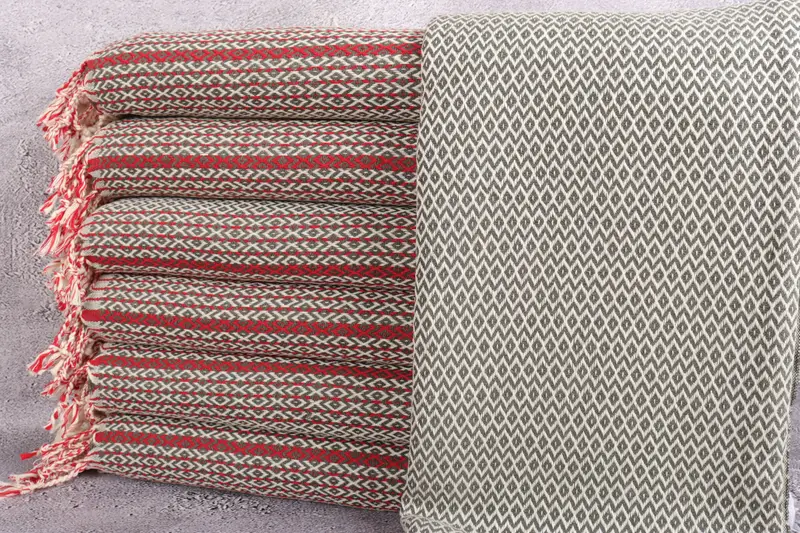 Bath Towel Personalized Geometric Peshtemal Beige, 40x71 Inches