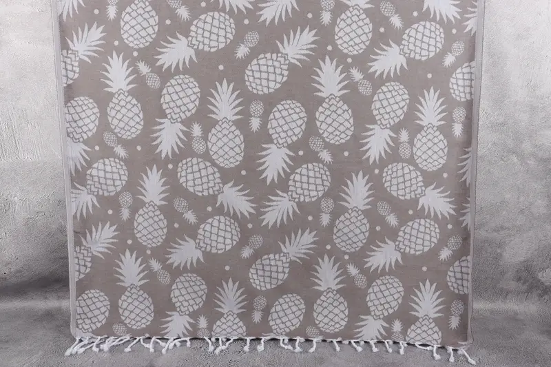 Organic Turkish Beach Towel Brown Pineapple Patterned, 40x71 Inches