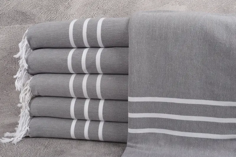 Organic Turkish Towel, Dark Gray Striped Peshtemal, 40x74 Inches