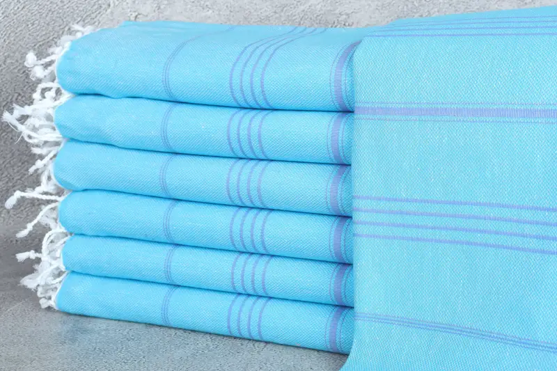 Custom Turkish Towel Blue-Purple Stripes, Organic Cotton, 40x71 Inches