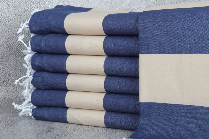 Custom Turkish Towel Monogram Navy Blue-Beige Striped 40x71 Inches