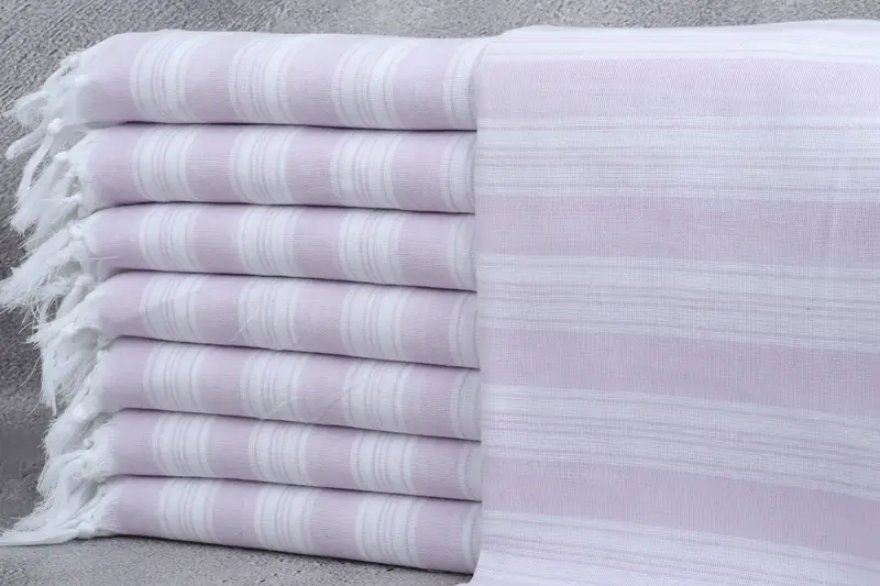 Personalized Beach Towel Turkish Cotton Light Lilac Stripes, 40x71 Inches
