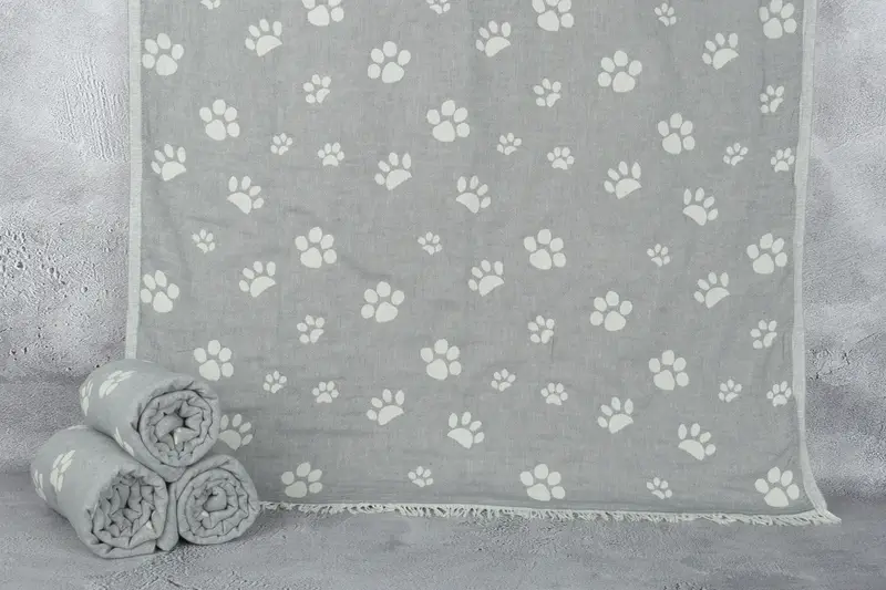 Personalized Dark Gray Turkish Towel with Paw Design, 36x71 Inches