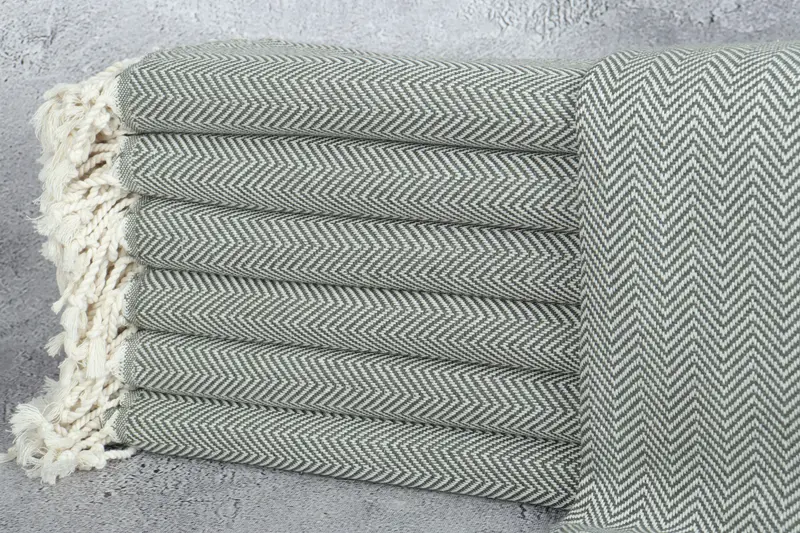 Turkish Towel Beach, Khaki Green Herringbone, 40x71 Inches