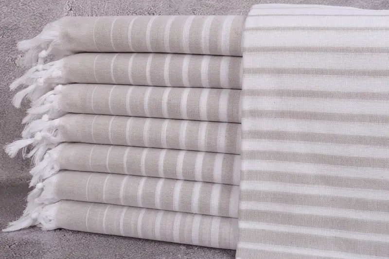 Beach Towel Organic Cotton Striped, Beige, 40x69 Inches