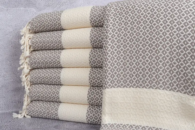 Wedding Gift Towels Organic Cotton Striped Brown, 40x71 Inches
