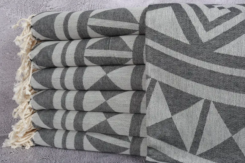 Personalized Turkish Towel Organic Patterned Black 40x67 Inches