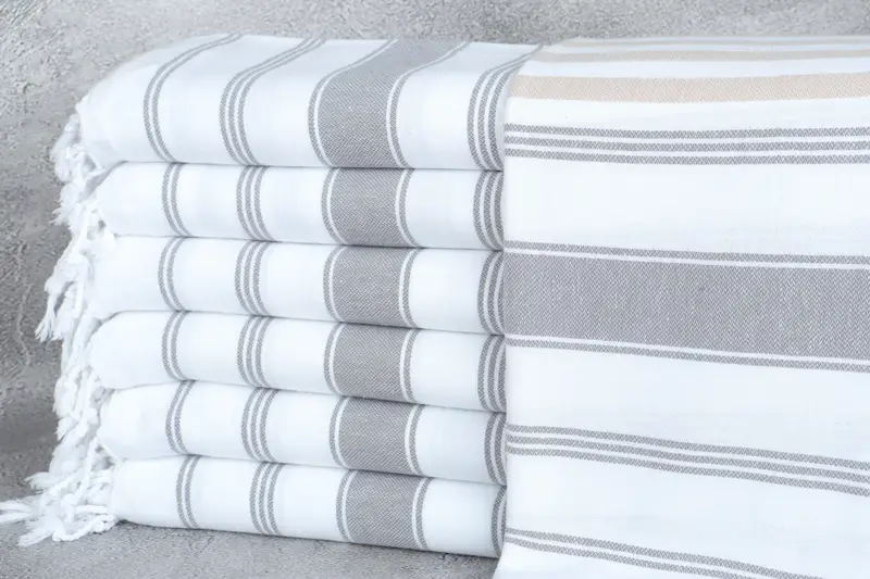Personalized Bachelorette Beige-Dark Gray Striped Towel, 40x71 Inches