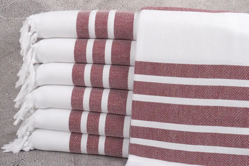 Personalized Turkish Towel Burgundy Chevron, Beige, 40x71 Inches