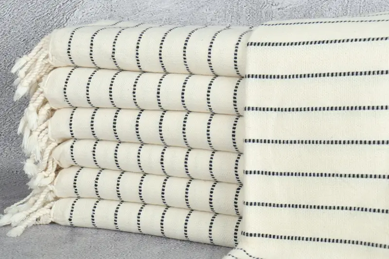 Personalized Turkish Towel, Black Organic Cotton, Striped, 36x67 Inches