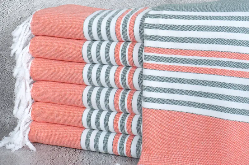 Personalized Embroidered Beach Towel Dark Green-Orange Stripes, 40x67 Inches