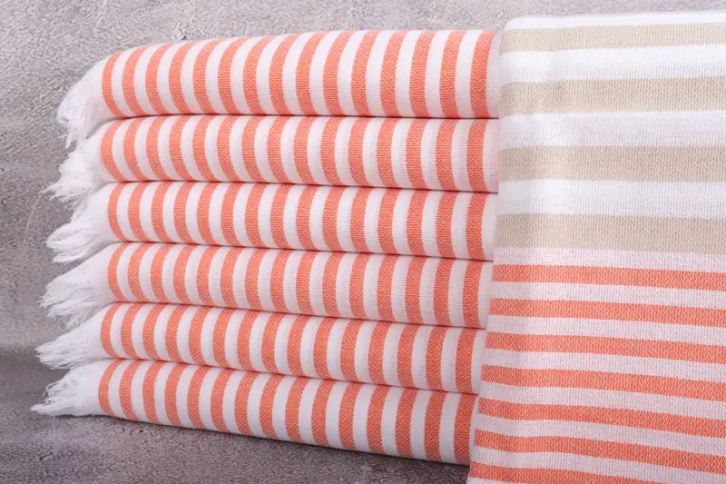 Turkish Beach Towel Organic Cotton Stripes, Beige, 40x71 Inches