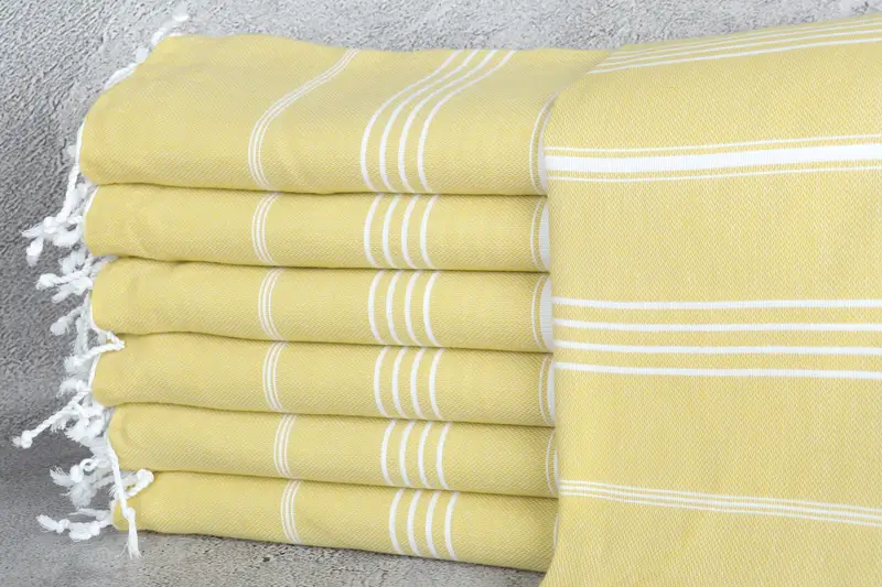 Turkish Towel Beach Organic Cotton, Lemon Green Stripes, 40x71 Inches